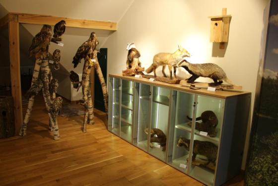 Wyposażona jest w przeróżne pomoce dydaktyczne m.in. eksponaty spreparowanych zwierząt, trofea łowieckie, próbki drewna, leśne gry i zabawy, gabloty z owadami oraz sprzęt multimedialny umożliwiający wyświetlanie prezentacji oraz projekcję filmów. W obiekcie znajduje się również kącik historyczny Lasów Państwowych, w którym wyeksponowane są przedmioty i różne narzędzia wykorzystywane niegdyś w pracy przez leśników. Nadleśnictwo udostępniło również przestrzeń do zaprezentowania zbiorów eksponatów historycznych pochodzących z terenu powiatu oleckiego i gołdapskiego dla Gołdapskiego Stowarzyszenia Historycznego „ARCHEO”. Można tam zobaczyć części broni, amunicji  i wyposażenia wojskowego z okresu I i II Wojny Światowej, a także czasopisma, zdjęcia, elementy biżuterii i przedmioty użytku domowego.
